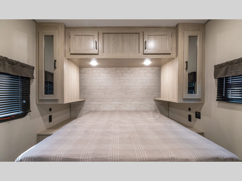 Sleeps 4 Slides 1 Length 28 ft 3 in Ext Width 8 ft Ext Height 11 ft 1 in Int Height 6 ft 9 in Hitch Weight 898 lbs GVWR 7898 lbs Dry Weight 6356 lbs Cargo Capacity 1542 lbs Fresh Water Capacity 38 gals Grey Water Capacity 44 gals Black Water Capacity 29 gals Furnace BTU 35000 btu Available Beds RV Queen Refrigerator Type GE Stainless 12V Refrigerator Size 10.7 cu ft Cooktop Burners 3 Shower Size 34" x 34" Number of Awnings 1 LP Tank Capacity 20 lbs Water Heater Type Tankless On Demand AC BTU 13500 btu Awning Info 18' Electric w/Multicolor LED Strip & Remote Axle Count 2 Number of LP Tanks 2 Shower Type Radius Electrical Service 30 amp Similar Floorplans
