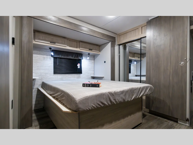Sleeps 5 Slides 1 Length 33 ft 2 in Ext Width 8 ft Ext Height 11 ft 1 in Int Height 6 ft 9 in Hitch Weight 962 lbs GVWR 8736 lbs Dry Weight 7236 lbs Cargo Capacity 1500 lbs Fresh Water Capacity 38 gals Grey Water Capacity 74 gals Black Water Capacity 28 gals Furnace BTU 30000 btu Available Beds Queen Refrigerator Type GE Stainless 12V Refrigerator Size 10.7 cu ft Cooktop Burners 3 Shower Size 36" x 30" Number of Awnings 1 LP Tank Capacity 20 lbs Water Heater Type Tankless On Demand AC BTU 13500 btu Awning Info 21' Electric w/Multicolor LED Strip & Remote Axle Count 2 Number of LP Tanks 2 Shower Type Standard Electrical Service 30 amp Similar Floorplans
