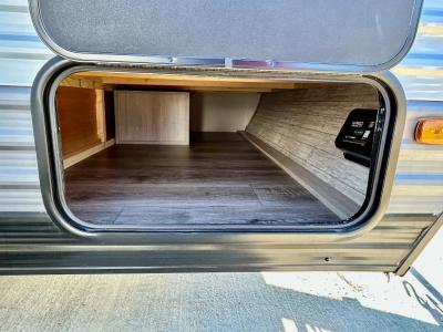 Lightweight camping is easier than you think with this travel trailer in tow! The front 54" x 74" bed will provide a great night's rest each night. There is a handy shelf above the front bed for your belongings plus overhead storage in the kitchen area. A private bath includes a 24" x 32" shower and a toilet with a mirror behind it so you can freshen up each day. You'll also find a two burner cooktop and microwave oven to make meals each day plus a 3.3 cu. ft. 12V refrigerator for food storage!