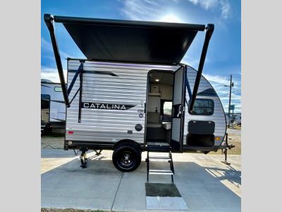 With any Catalina Summit Series 7' by Coachmen RV, you can create an easier adventure with the versatility and simplicity of the shorter lengths and lighter weights! Each includes a premium exterior graphics package, a smooth HD aluminum radius front, and EZ lube axles with leaf spring suspension. The exterior offers a heavy duty standard tongue jack, a diamond plate rock guard to protect against road debris, exterior RG-6 coax cabling and satellite prep, rear view camera prep, and flush mount baggage doors with radius corners for your outdoor gear. Inside, you will enjoy a premium JBL interior speaker, USB charging ports, seamless Thermofoil countertops throughout, a deep basin farm style sink for easy cleanup, and GE kitchen appliances. It's time to choose an affordable and maneuverable single axle trailer today!