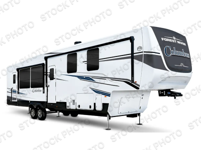 Experience a different camping life with residential furnishings and high-end features in each one of these Forest River Columbus fifth wheels! Durable construction begins with a 101" wide body, an all-welded aluminum frame superstructure, and high-gloss fiberglass vacuum bonded walls and slide out ends with dual Azdel. You will appreciate the Lippert axles, MORryde CRE 3000 suspension system, and 16" wheels with nitrogen-filled tires for a smooth tow from home to campground. Additional exterior features include a tire pressure monitoring system, a heated utility convenience center, an outside sprayer, and slam latch on all the storage doors. Inside, you'll be met with many luxurious amenities, including residential style crown molding throughout, roller day/night shades, upgraded true solid surface countertops in the bath and kitchen, plus solid wood steps.