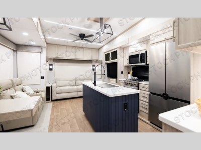 Sleeps 4 Slides 3 Length 41 ft 5 in Ext Width 8 ft 5 in Ext Height 13 ft 6 in Hitch Weight 2635 lbs GVWR 16635 lbs Dry Weight 13609 lbs Cargo Capacity 3026 lbs Fresh Water Capacity 75 gals Grey Water Capacity 78 gals Black Water Capacity 71 gals Tire Size 16" Furnace BTU 35000 btu Available Beds King Refrigerator Type 12V Stainless Steel Residential w/Ice Maker Shower Size 48" x 30" Number of Awnings 2 Axle Weight 7000 lbs LP Tank Capacity 30 lbs Water Heater Capacity 12 gal Water Heater Type Quick Recovery AC BTU 45000 btu TV Info LR 50" Smart TV, BR Smart TV Awning Info 11' and 19' Power with LED Lights Axle Count 2 Washer/Dryer Available Yes Number of LP Tanks 2 Shower Type Shower w/Seat Electrical Service 50 amp Similar Fifth Wheel Floorplans