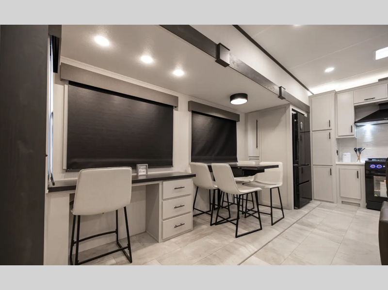 Sleeps 4 Slides 4 Length 36 ft 10 in Ext Width 8 ft 6 in Ext Height 13 ft 3 in Hitch Weight 2260 lbs Dry Weight 11699 lbs Cargo Capacity 2800 lbs Fresh Water Capacity 54 gals Grey Water Capacity 78 gals Black Water Capacity 39 gals Available Beds King Refrigerator Type 12V Refrigerator Size 16 cu ft Cooktop Burners 4 AC BTU 18000 btu TV Info LR 70" 4K Smart TV Awning Info Electric Awning with LED lighting Axle Count 2 Washer/Dryer Available Yes Shower Type Standard Electrical Service 50 amp Similar Floorplans